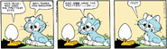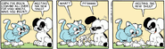 - Blue, along with Booker, Cody, Orson, and Roy (or at least some animals resembling them) made a cameo in a later Garfield comic strip on April 22 2001. For some reason her fur is yellow instead of blue.