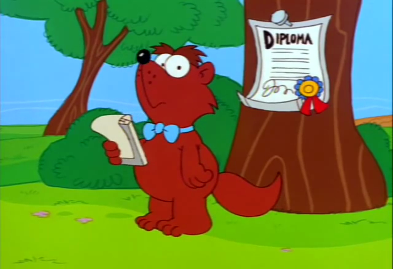 In most of his appearances, Edward R. Furrow is an orange badger, who has two huge eyes with white sclera and black pupils, two big bushy eyebrows, two small ears, a long snout and a black nose. He wears a blue bow tie on his chest. He also has a very plump body and legs, as well as big feet. He also has a bushy tail. In "Daydream Doctor", he appears to be colored yellow.