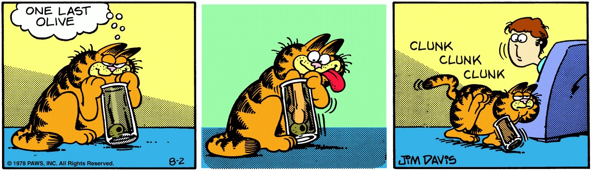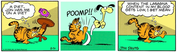 - August 27, 1978: (The start of a storyline about Garfield going on a diet.)