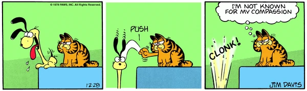 - December 28, 1978: (This strip is animated in Here Comes Garfield.)