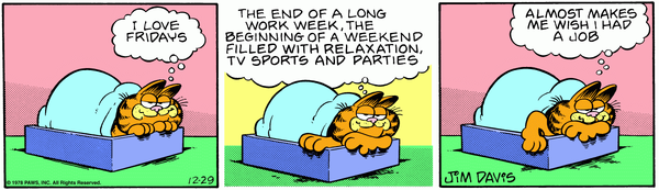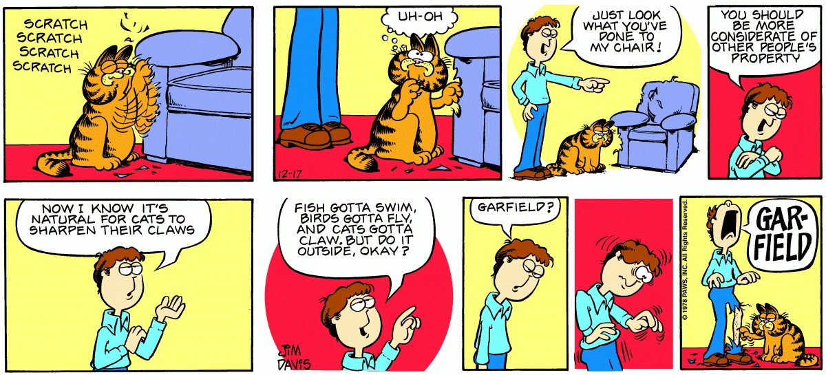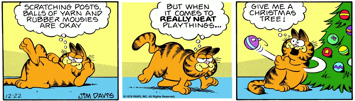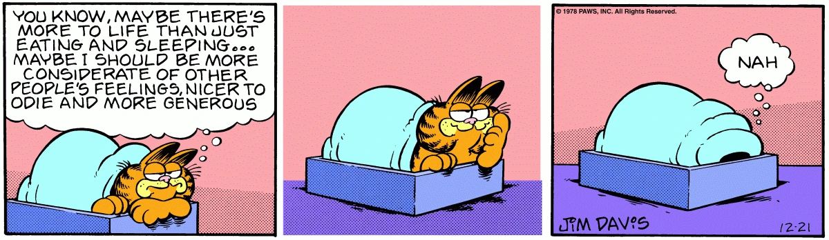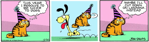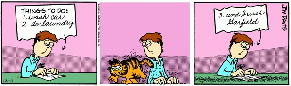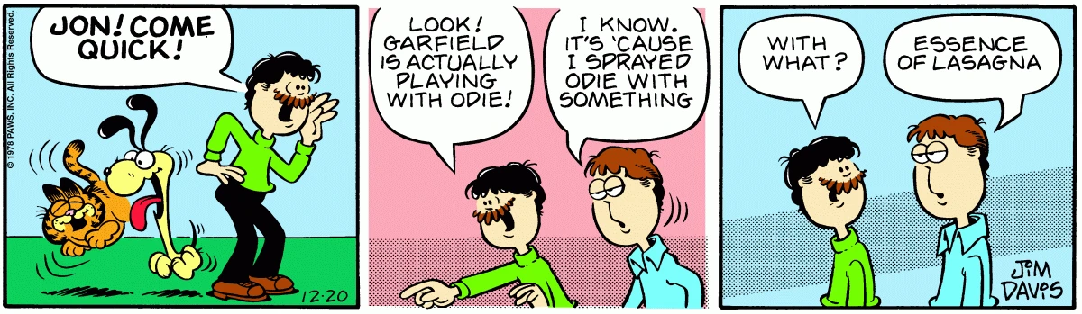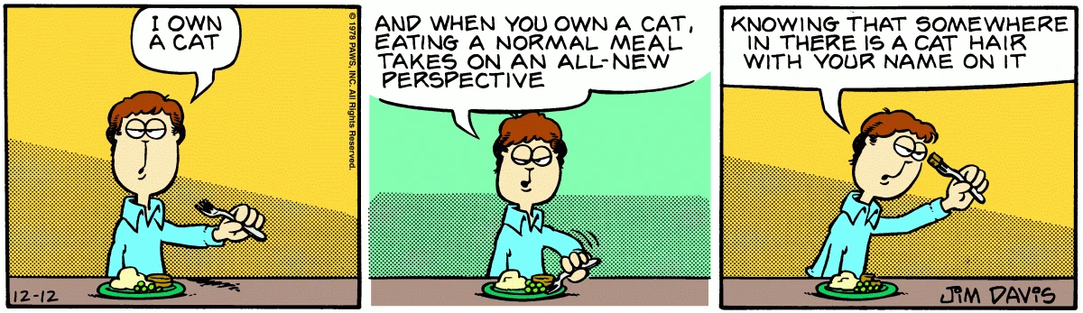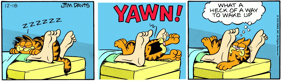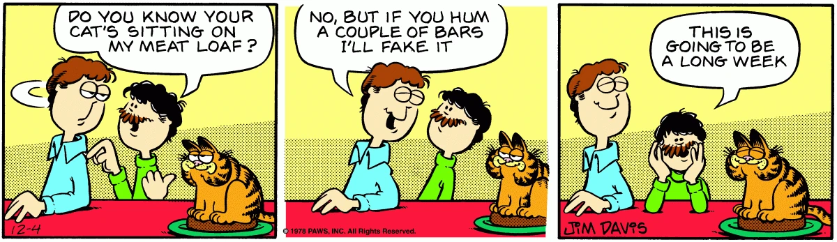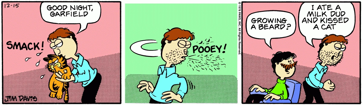 - December 16, 1978: (The end of a storyline about Garfield shedding.)