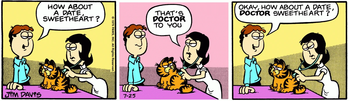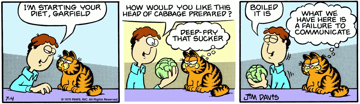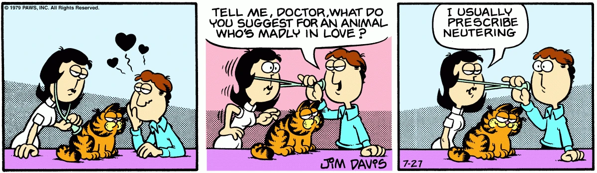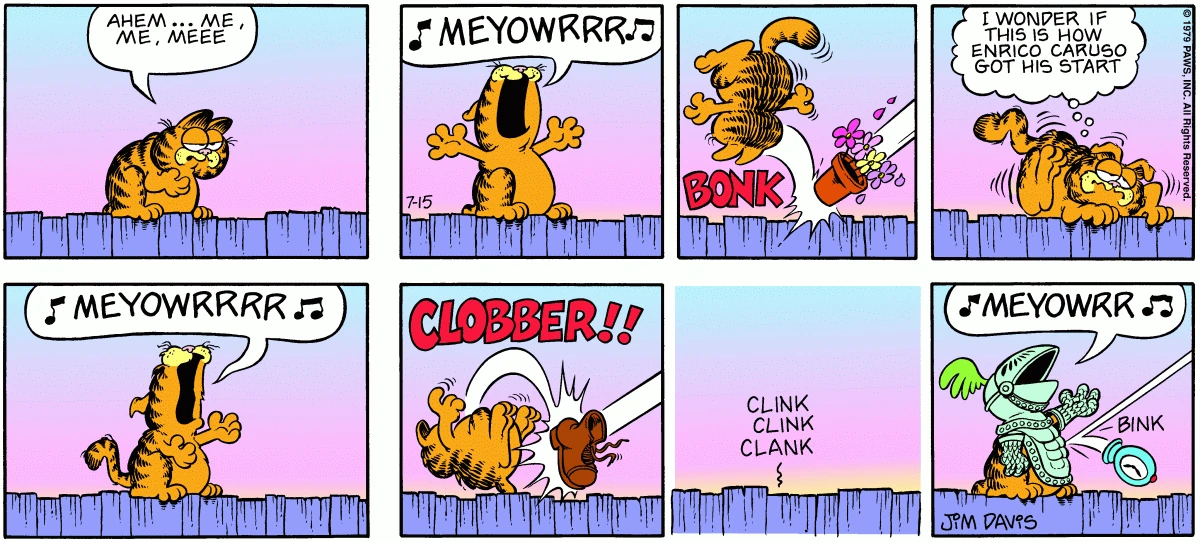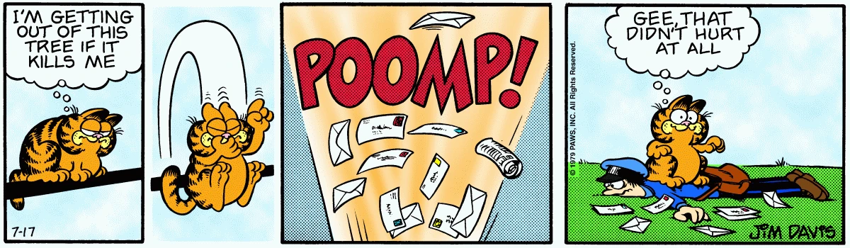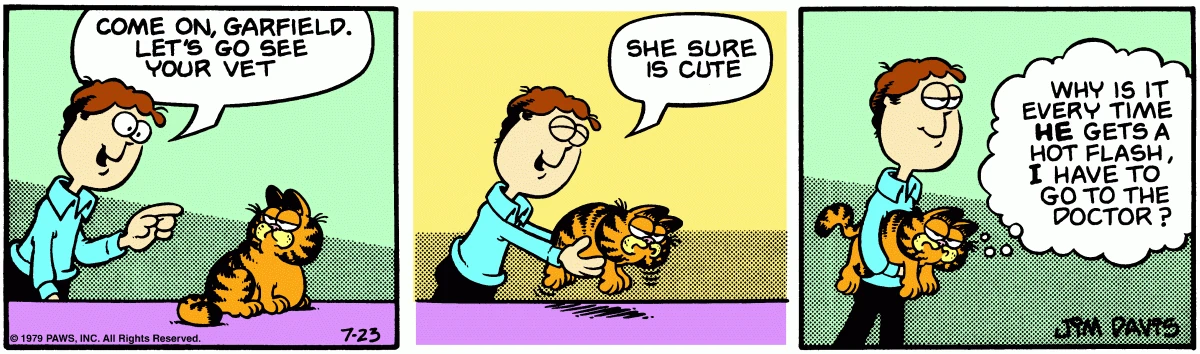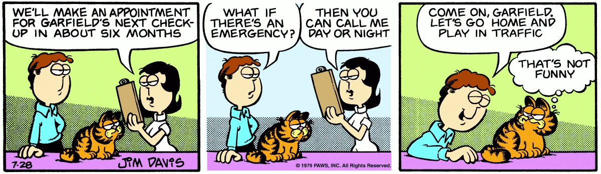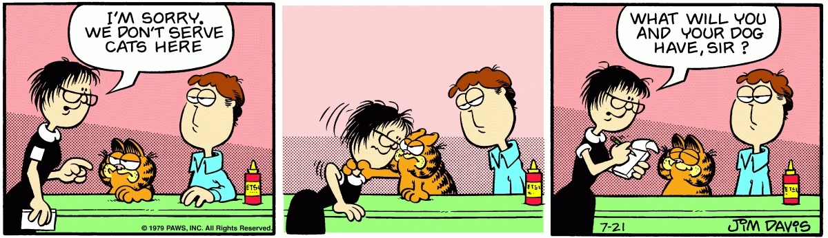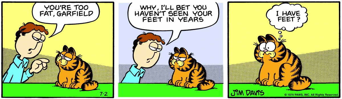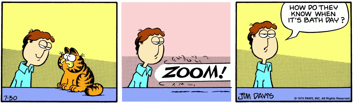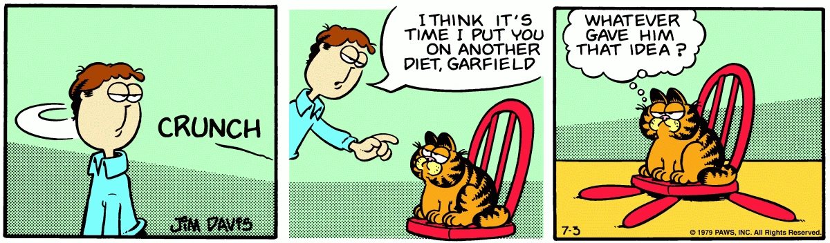 - July 4, 1979: (The last line of this strip is used in Here Comes Garfield.)