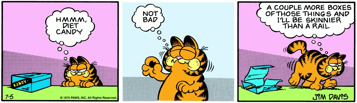 - July 2, 1979: (This strip is animated in The Fantastic Funnies and the start of another "Diet Week".)