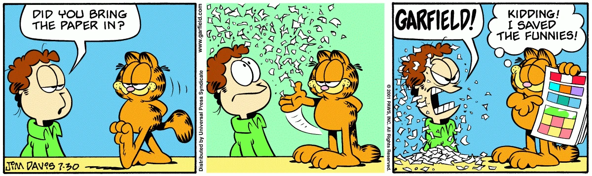 - July 28, 2001: (The first time Jon's birthday is celebrated in the strip.)