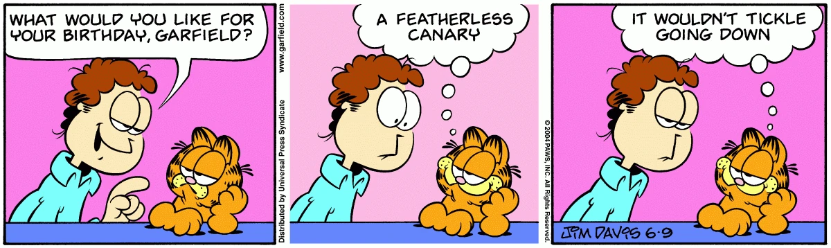 - June 19, 2004: (Garfield's birthday, the 26th anniversary of the comic strip.)