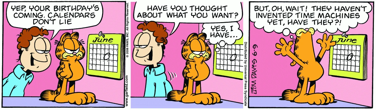 - June 19, 2008: (Garfield's Birthday, the 30th anniversary of the comic strip.)