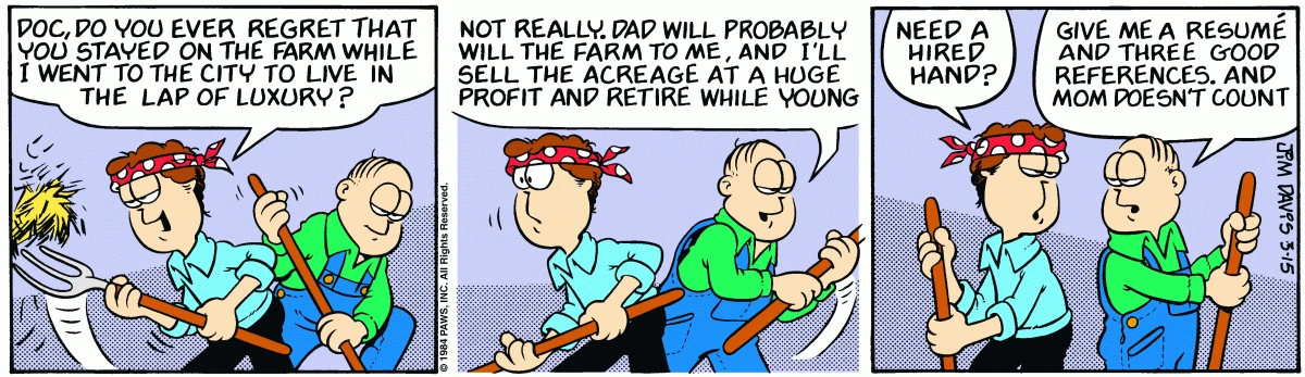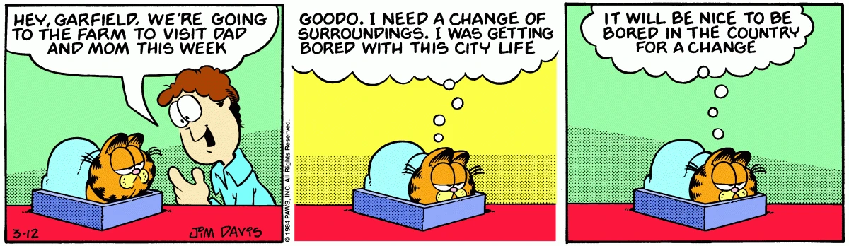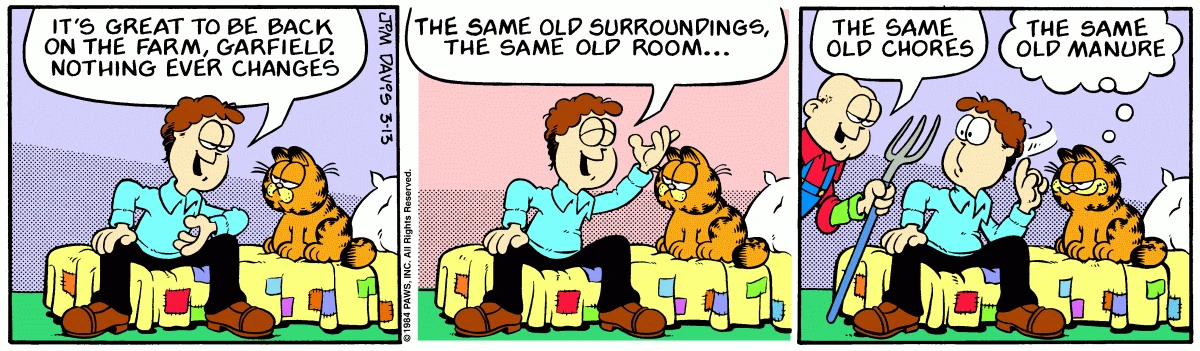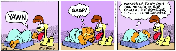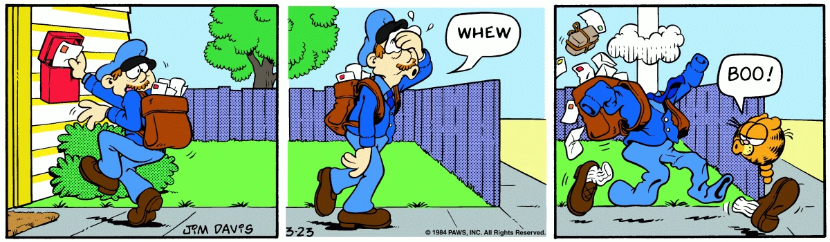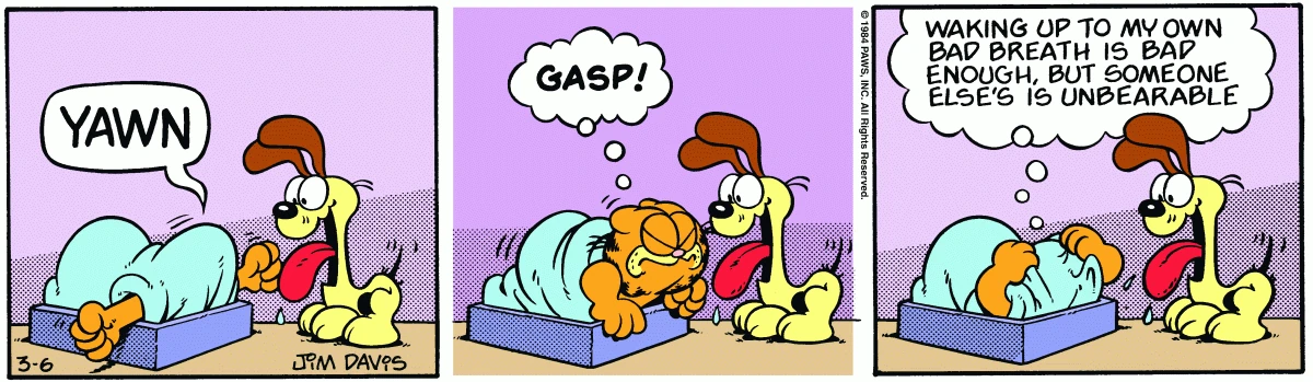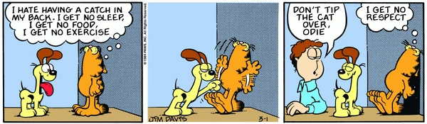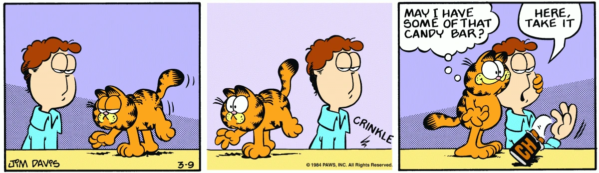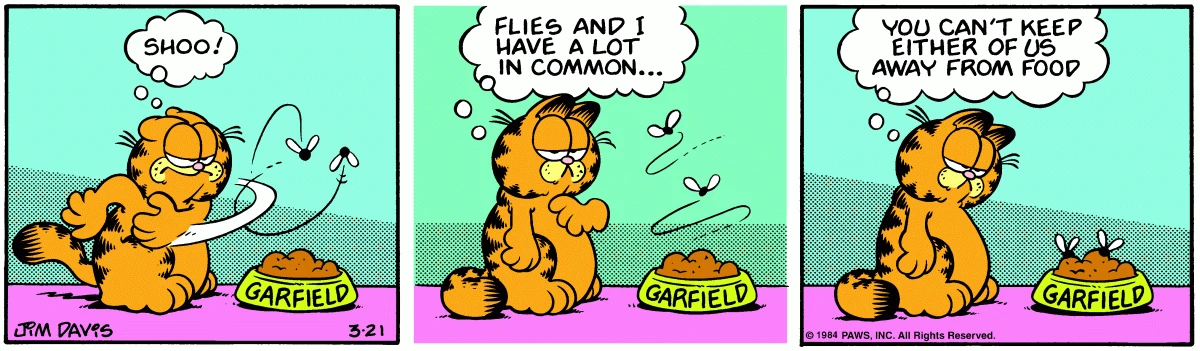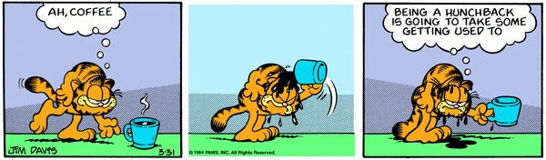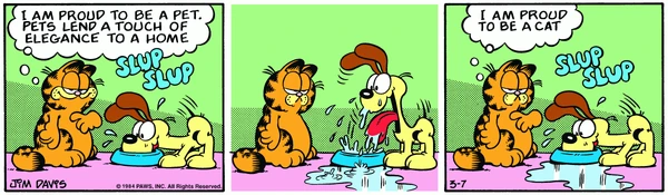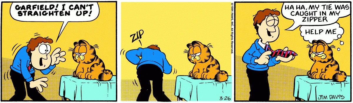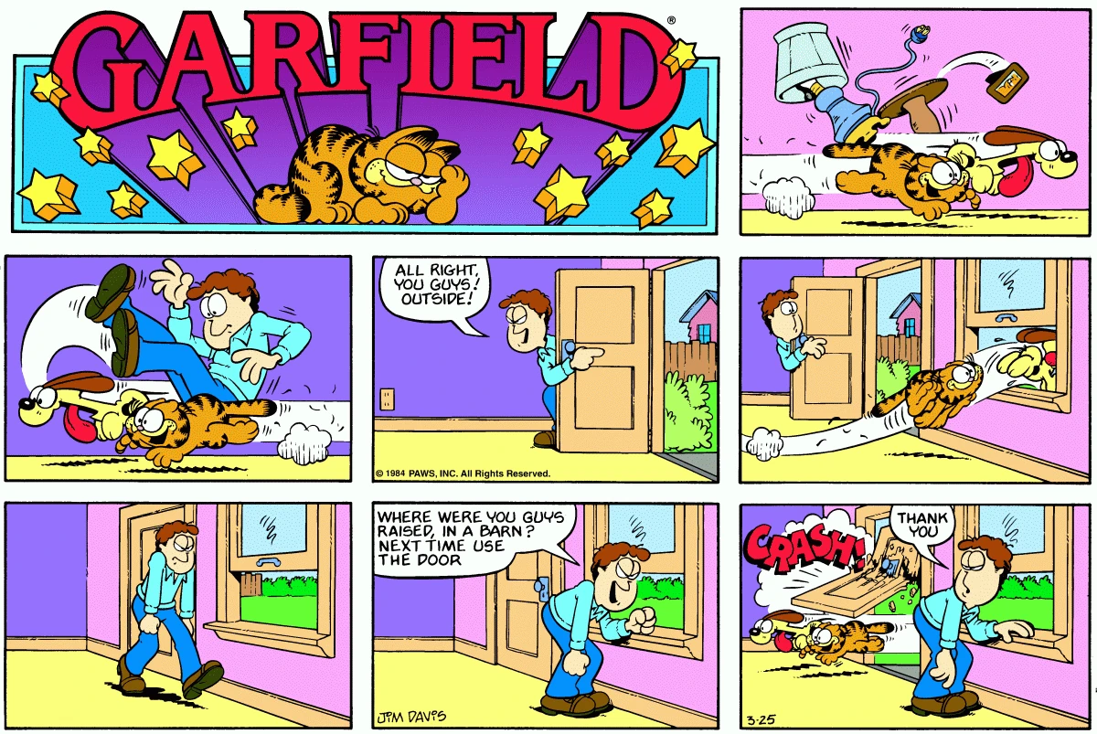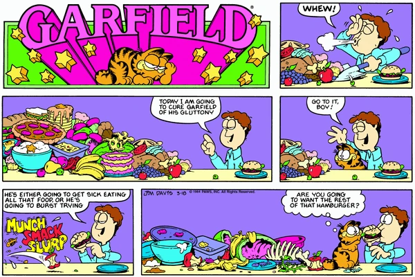 - March 8, 1984: (This comic was featured in Happy Birthday, Garfield!)