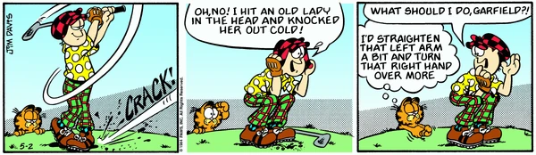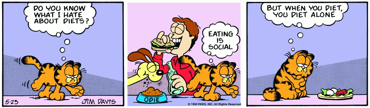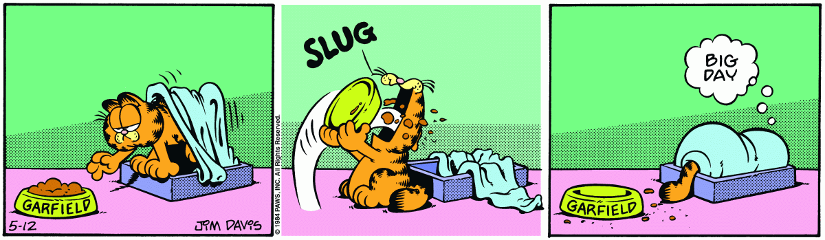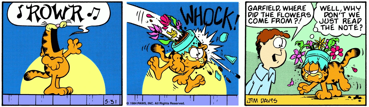 - May 13, 1984: (First strip to feature shadows under Garfield and Odie's legs.)