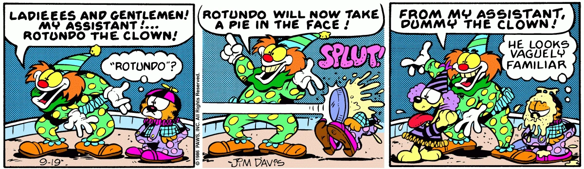 - September 17, 1986: (first physical appearance of Binky the Clown in the strip)