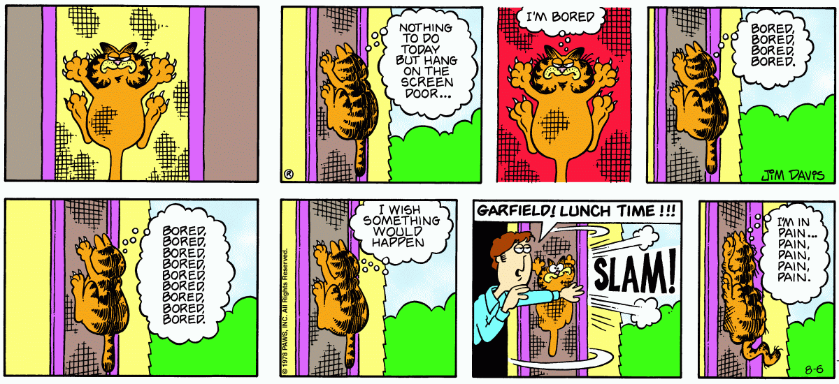 - The strip does not have any dialogue, but Garfield gets two lines: