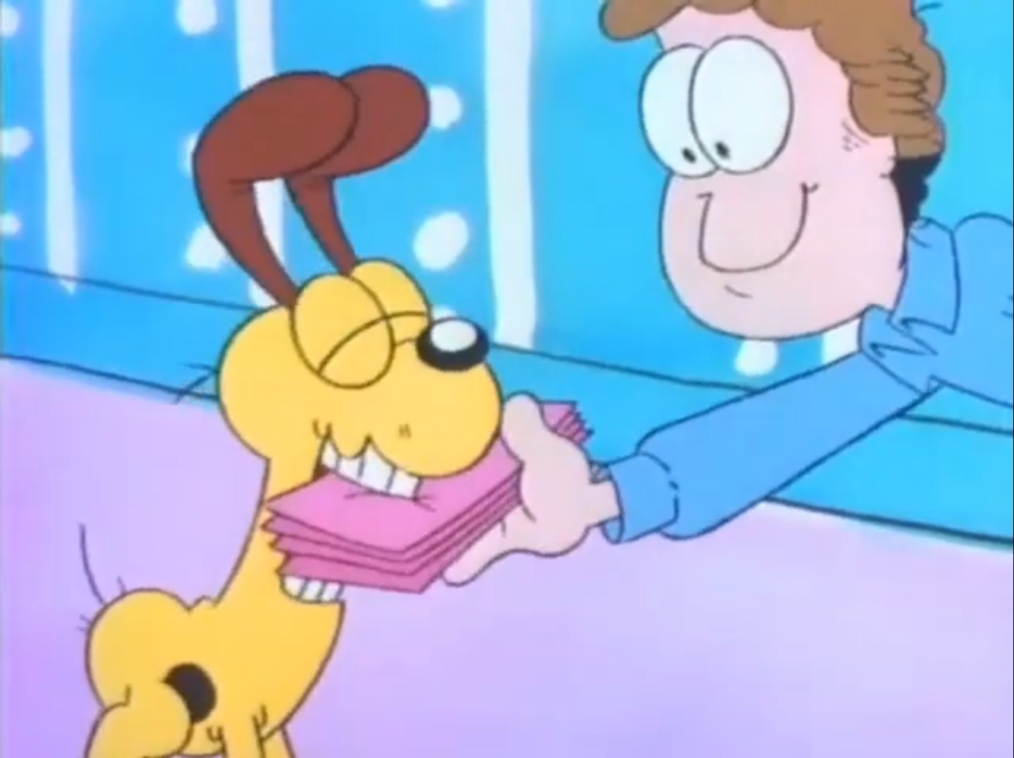 Odie has been in 13 Quickies during Season 1, the smallest number of the big three main characters, but still more than half the Quickies. He enjoyed a few good laughs at Garfield's expense during a couple of Quickies, other times his lovable puppy nature is more present.