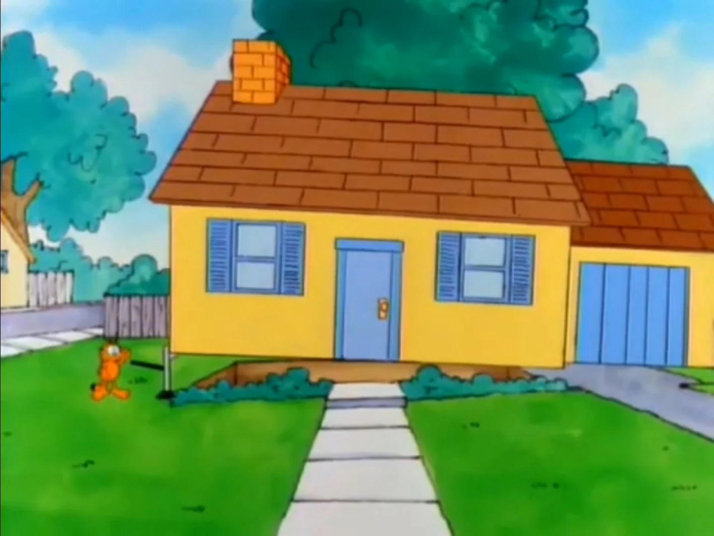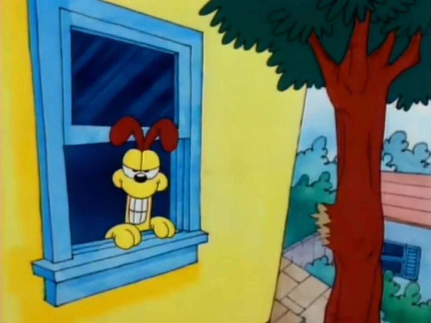 - Garfield waving his fist in the air is removed.