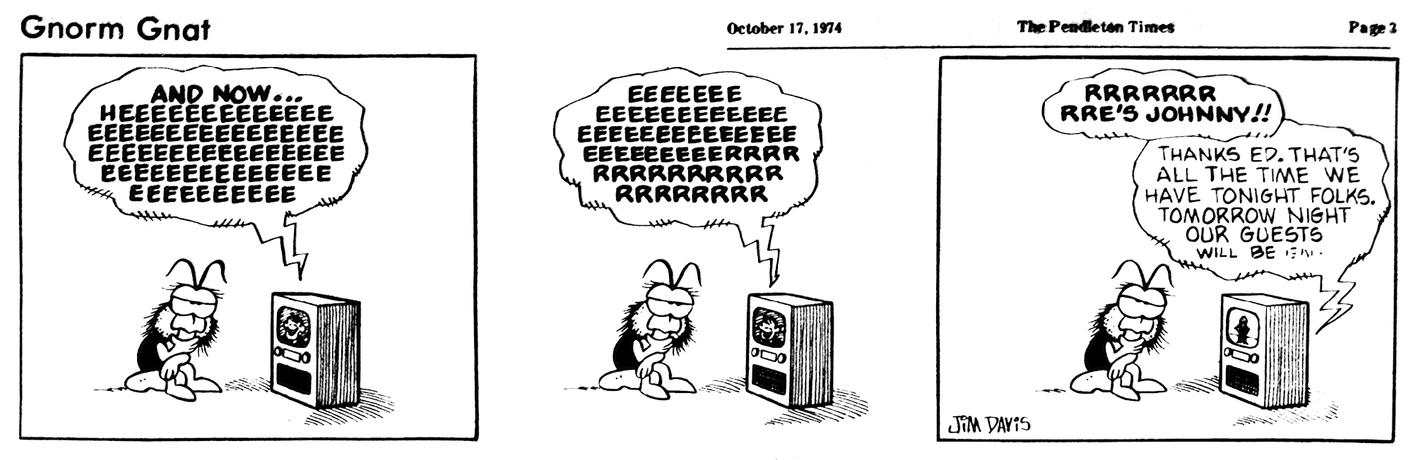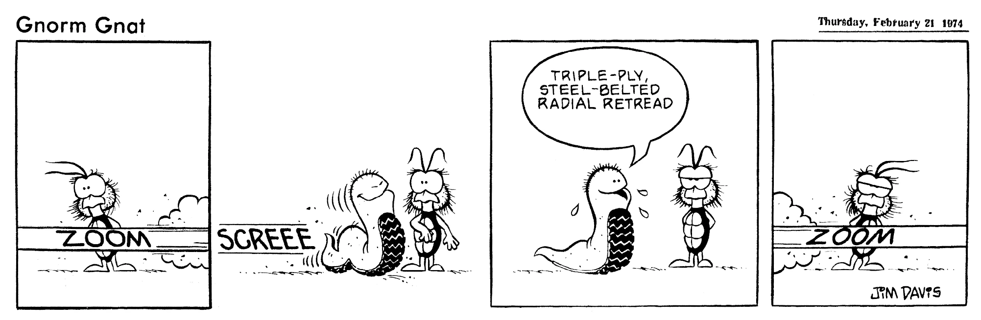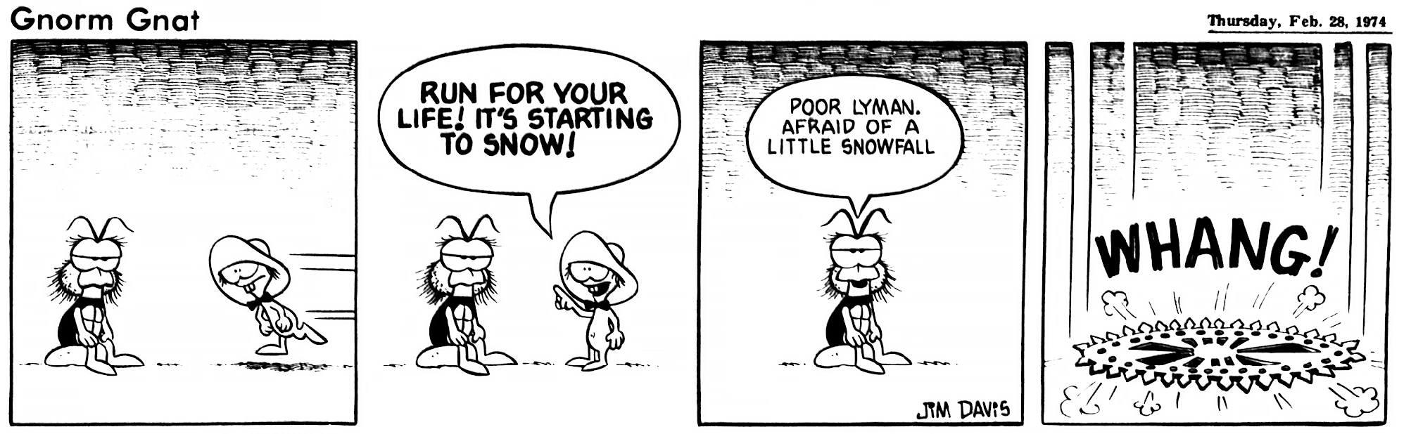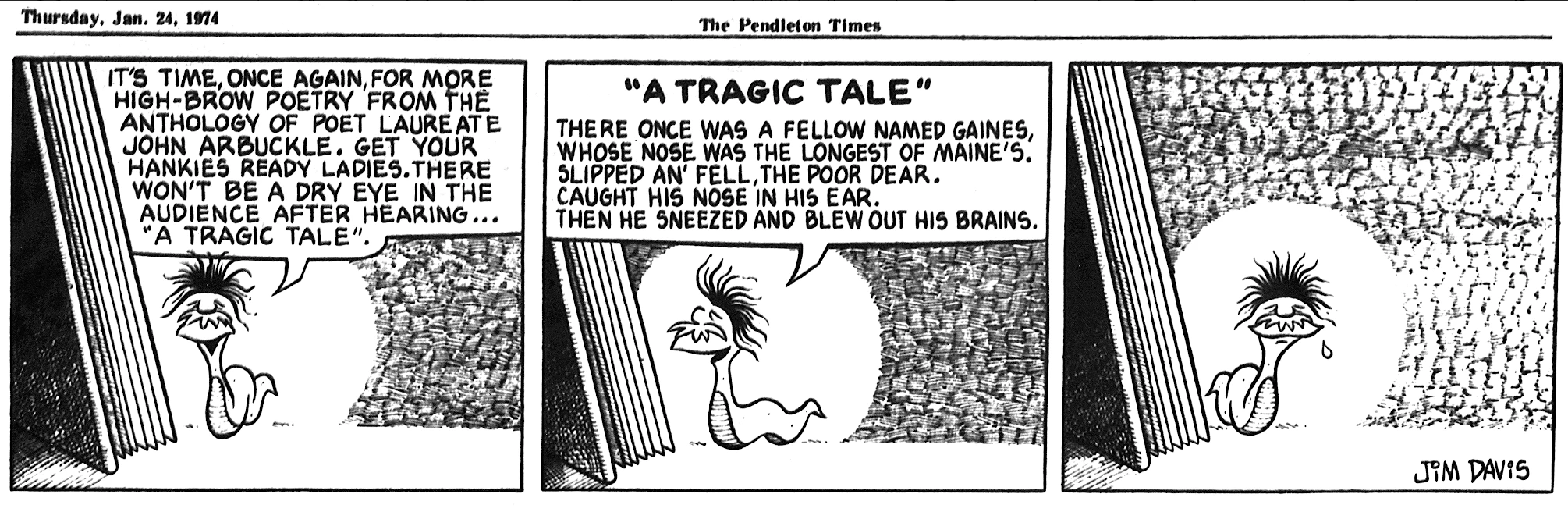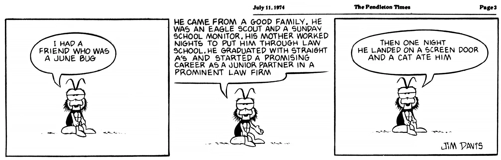- February 21, 1974: (This strip was later reworked into the November 3, 1978 Garfield strip.)