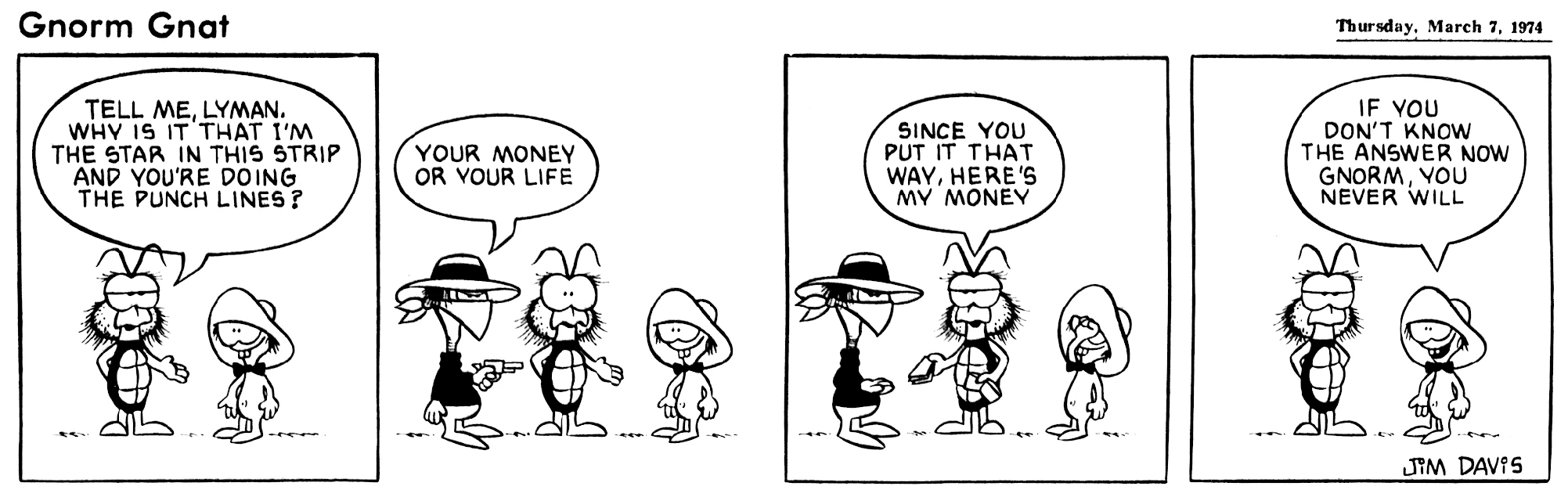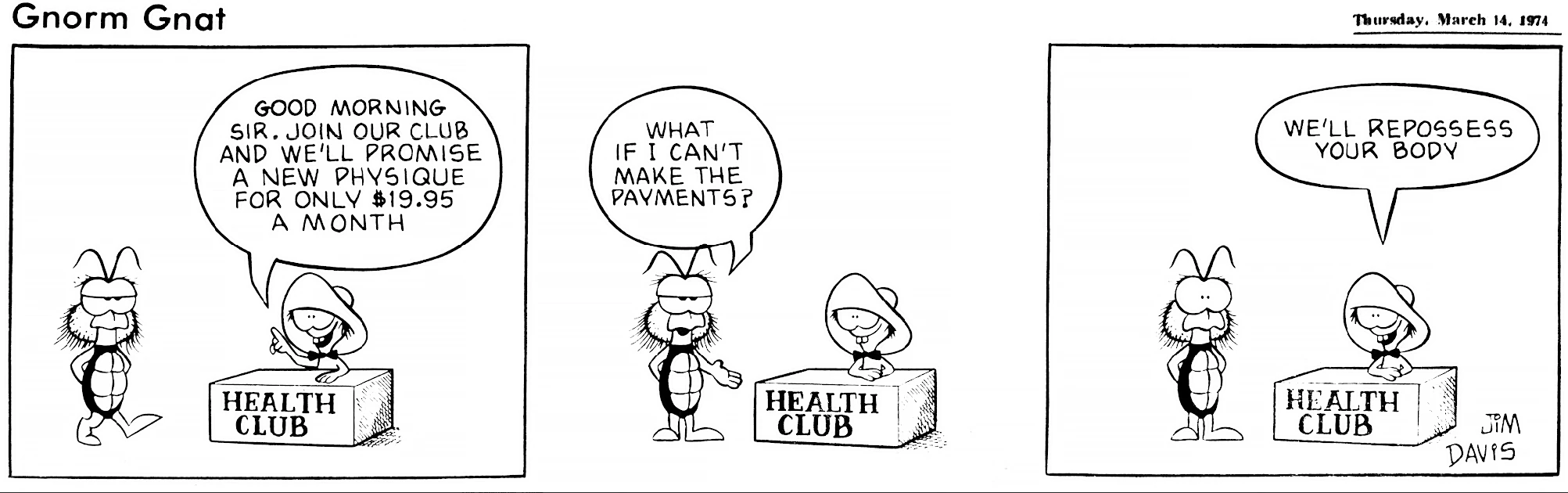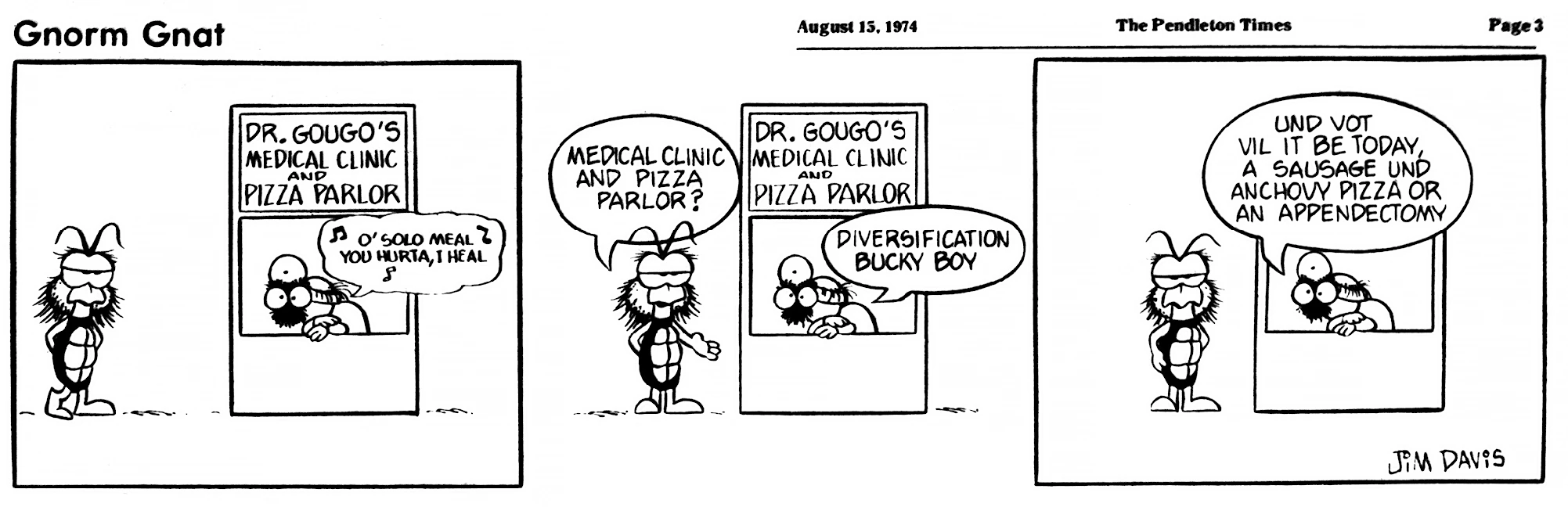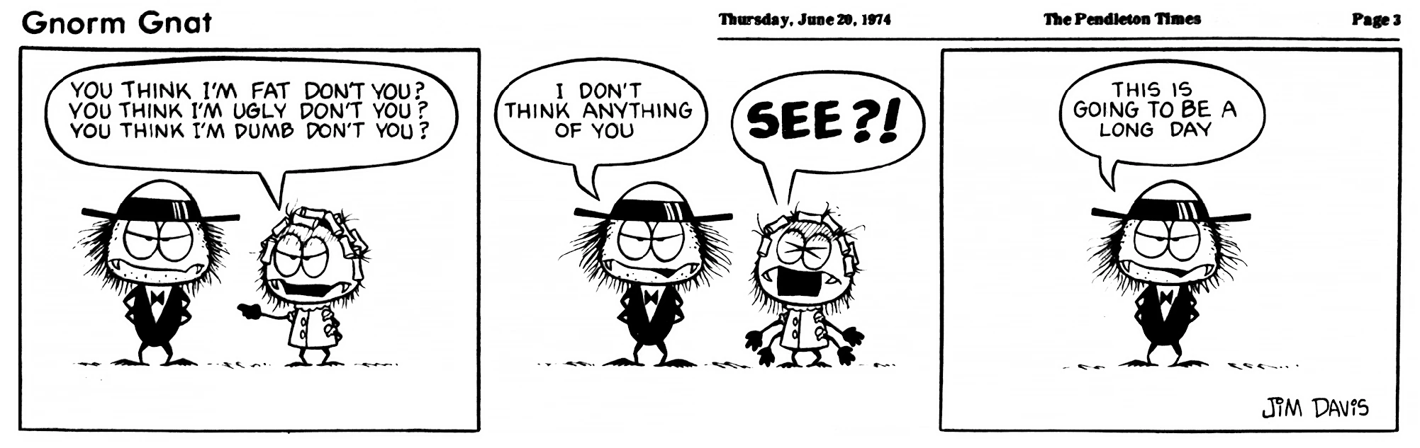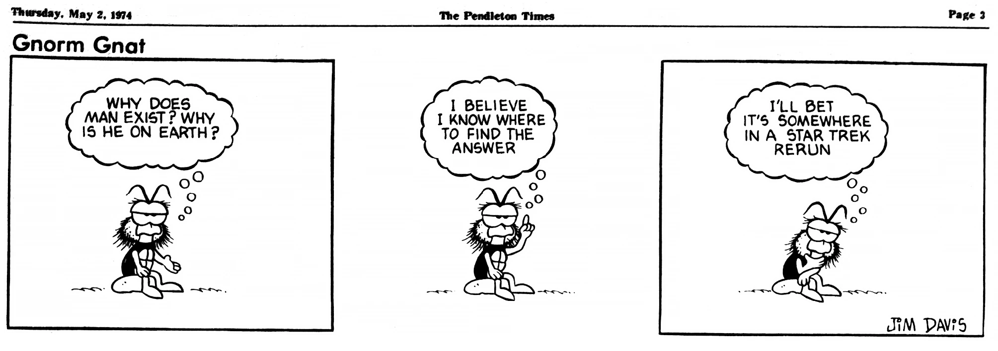 - February 21, 1974: (This strip was later reworked into the November 3, 1978 Garfield strip.)