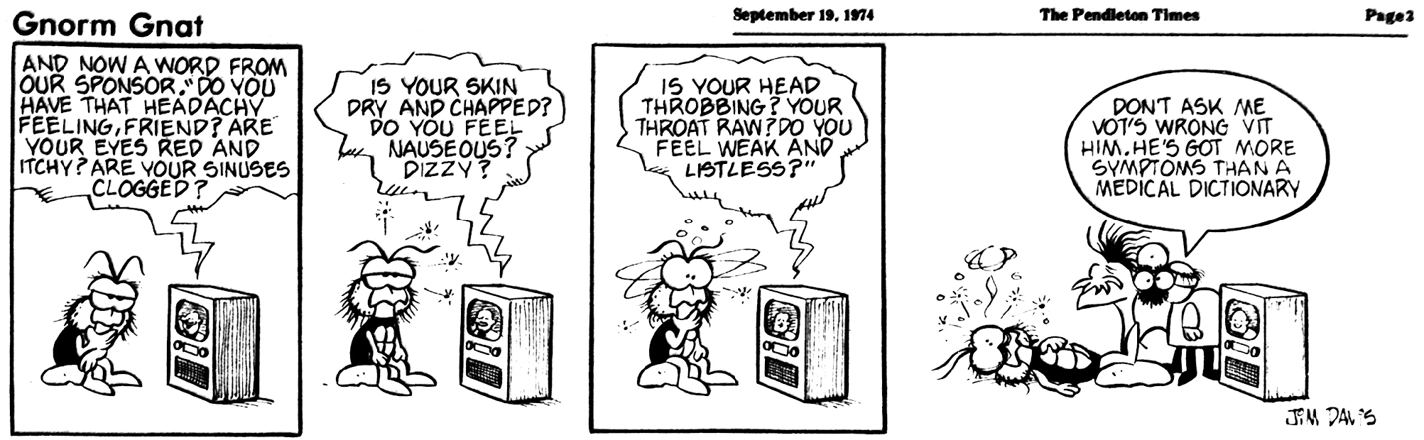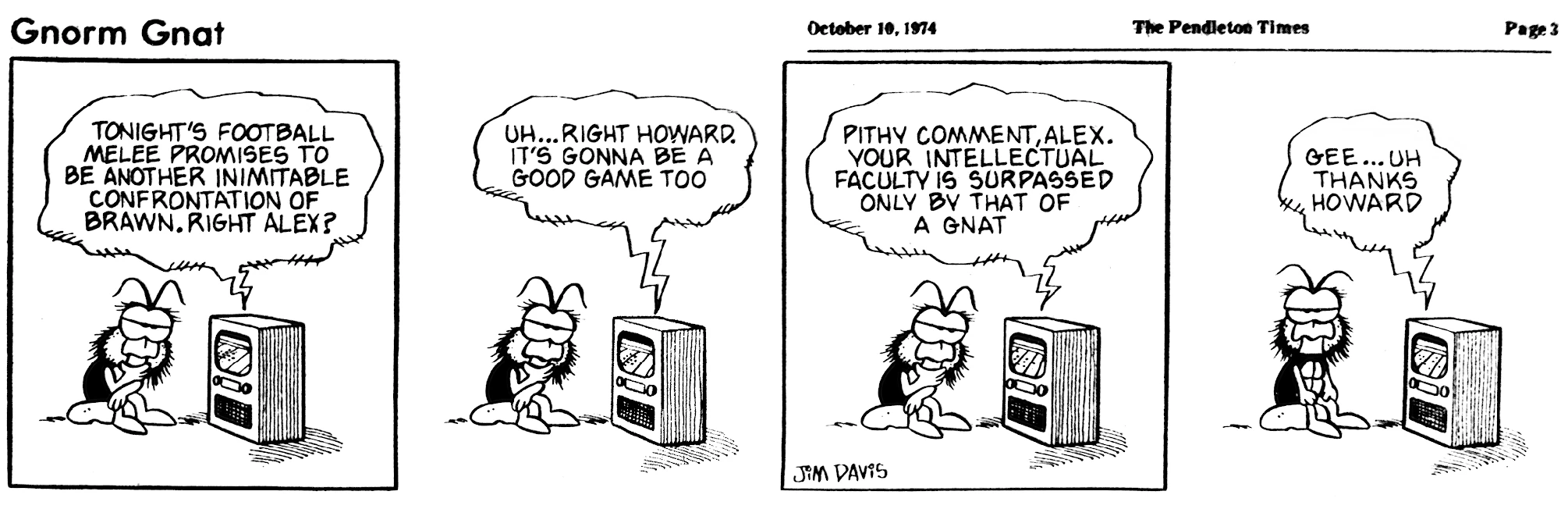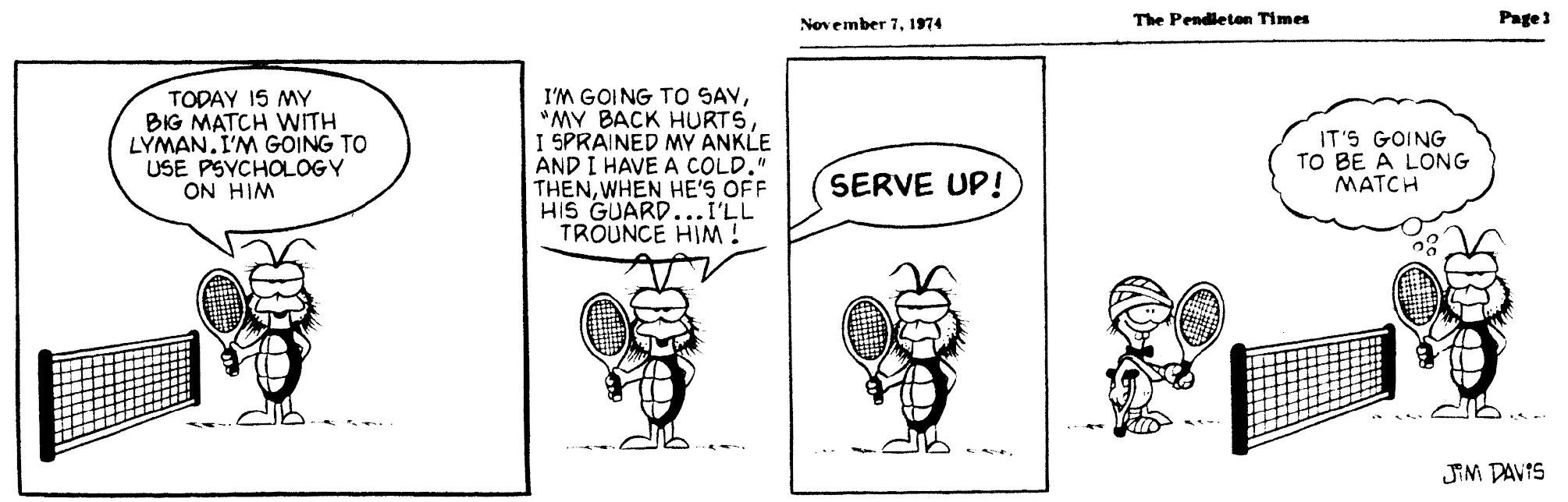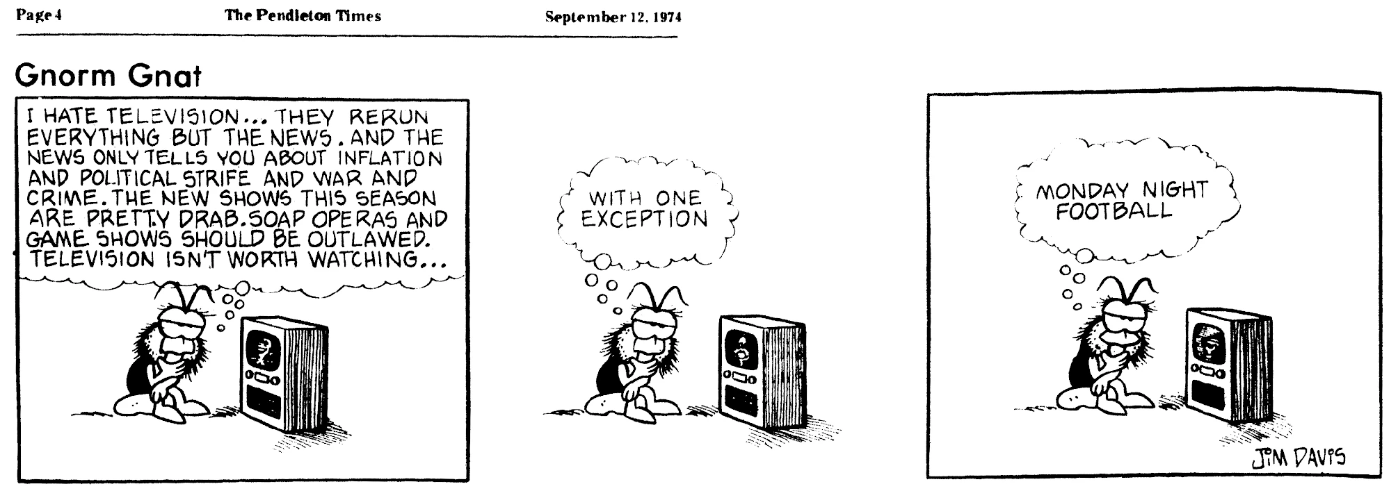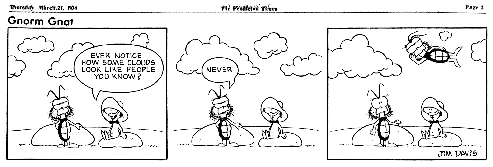 - February 21, 1974: (This strip was later reworked into the November 3, 1978 Garfield strip.)