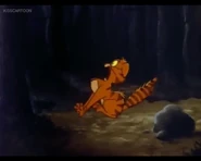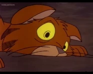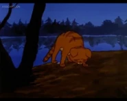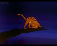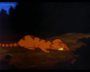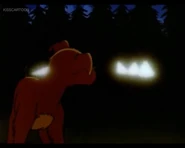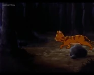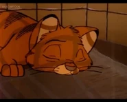 Garfield currently is in his eighth life, in which he is a pampered cat owned by Jon Arbuckle. Physical Appearance[]Garfield is an obese, ginger cat with large eyes, a pink nose, a yellow snout, long legs and black stripes. Personality[]Garfield is lazy, food-loving and cruel. He often insults him owner Jon Arbuckle, likes to kick Odie off of tables, and despises Nermal to his core. However, he does have a soft side for his teddy bear, Pooky Role[]Garfield[]Garfield was born in Mama Leoni's Italian Restaurant, he immediately began his life by causing a chef to fall over, so he can taste the food he was holding (Which was lasagna). When the food dropped, Garfield didn't know what it was so he started attacking it. But when he accidentally tasted it, he became very fond of it. Then he started eating more food until the chef grabbed him and told him he was going to the pet shop. His mother said that he was too young, but then Garfield stated that he was old enough to go and that he was tired of being around his house all the time, he then said goodbye to his mother and went off to the pet shop. While in the pet shop, he asked another cat how to get adopted. The cat replied by saying he should just act cute and then someone would buy him. Shortly after, Jon Arbuckle walked into the shop and purchased Garfield after he jumped on his face. Later, in the house, Jon asks Garfield how he is. Garfield responds by saying that he was in a good mood and that he let the mailman live. Jon then says that Garfield needs a playmate, Garfield doesn't think that however because he says he has his mirror. Jon then announces that he got a dog, which makes Jon very furious. Jon introduces Garfield to the dog, who is named Odie and Garfield says that its a tongue with eyeballs, rather than a dog, stating that it's like he knows him from a bad previous life. Garfield is then seen sitting on a chair, saying that it took lots of work, but he managed to become the head of the household and make Odie his servant. He then orders Odie to fetch his slippers for him. When Odie, does, Garfield smacks him with his newspaper, saying that the slippers are on the wrong feet, Odie quickly fixes that. Then, Garfield orders Odie to get Jon for him. He then asks Jon to make him a picnic outside. When Jon goes to prepare the picnic. Garfield and Odie hear the Ice cream truck and run to it. When Jon is about to cross the road, Odie grabs him by the foot, Garfield thinks Odie is trying to annoy him so he almost punches him when a car drives by and he realises that Odie saved his life. Garfield thanks Odie and walks down a meadow with him. Then we see Garfield and Odie years later where Garfield is telling the story to a few kittens, but he changes it so that he's the hero of the story, which angers Odie. Trivia[]