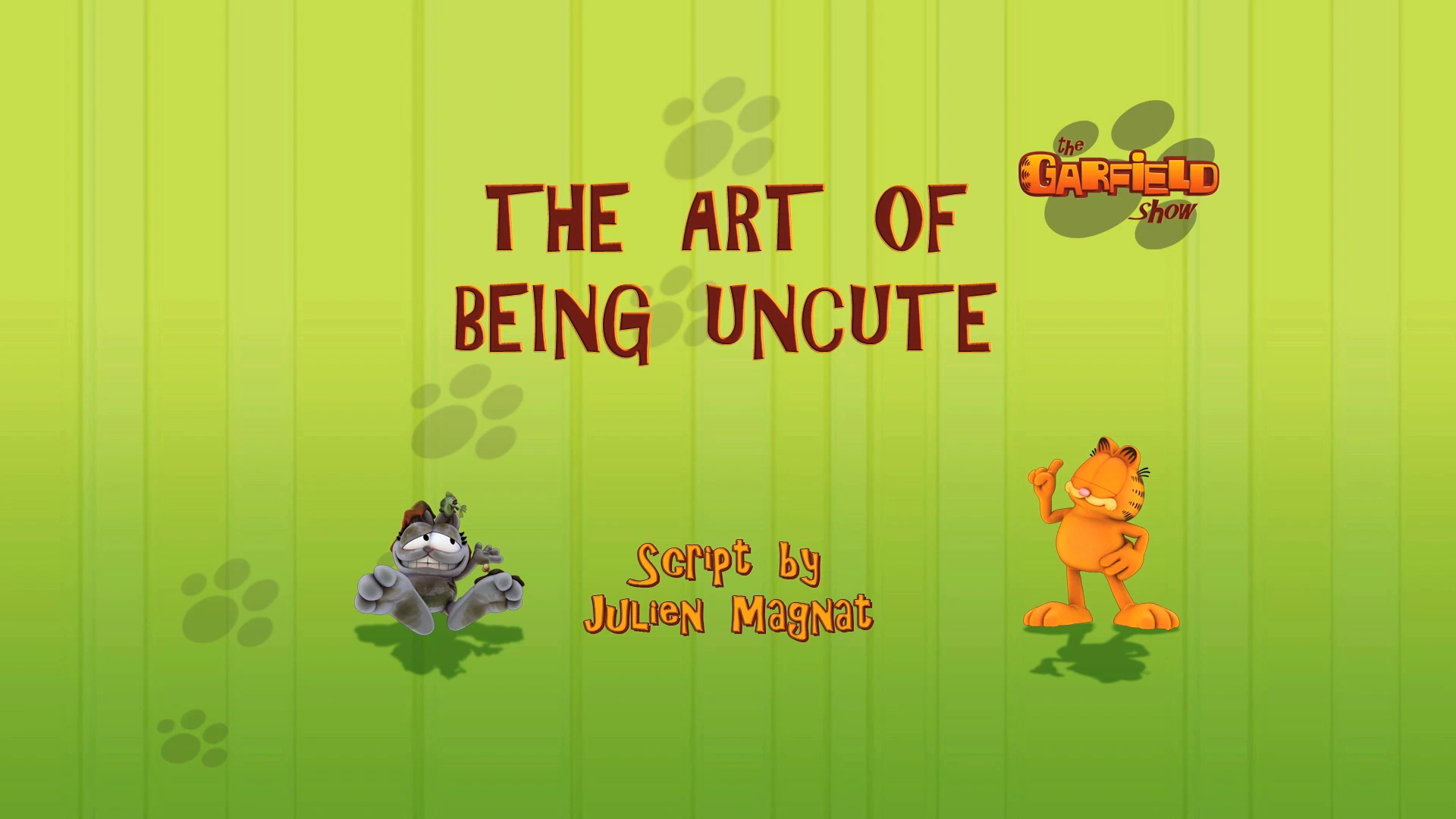 During a broadcast interruption, Eddie Gourmand announces that being uncute is the new kind of cuteness. Garfield elects to give Nermal a lesson, how to follow up the new standards.